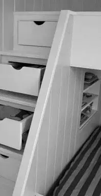 Ladders or stairs need to be about 18ins (46cm) wide so don't forget to add this on to your dimensions if you're building stairs at one end of the built in bunk beds rather than using a ladder.