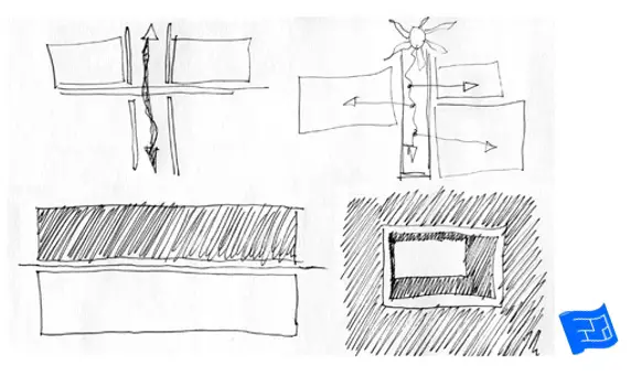 Architects often use the word parti to describe the initial ideas of footprint and form, what the building will look like, in plan or in elevation or both.