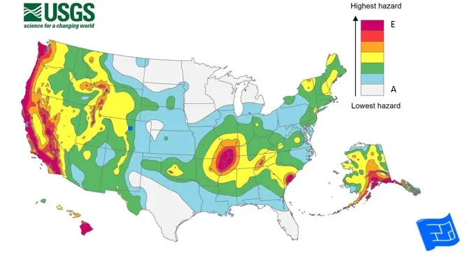 USGS 2018 Long term Seismic Hazard MapZones A-E (A-white, E- Red) – there are 3 D levels