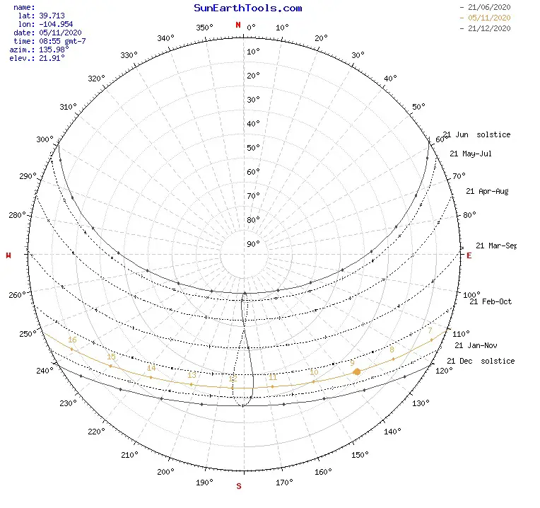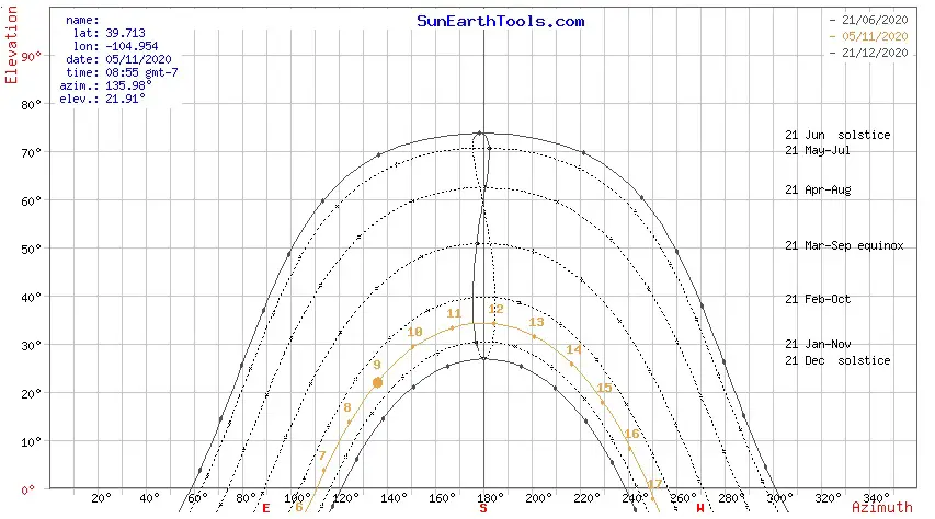 As well as your sun path, it's useful to know the maximum elevation of the sun at the June and September solstices and for the equinox.